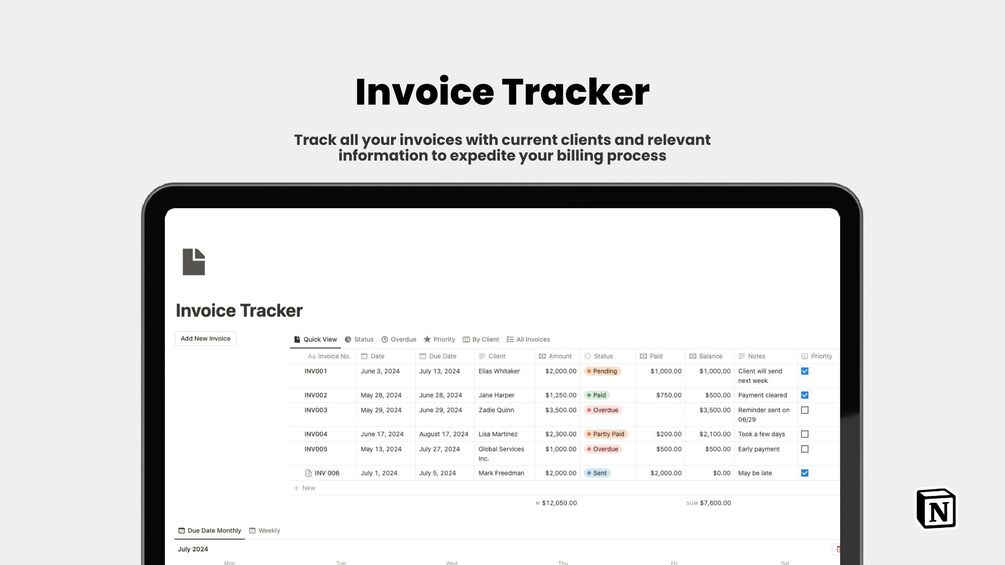 - Quick View: Get an at-a-glance overview of all your invoices. See important details like due dates, amounts, and client names in one place.